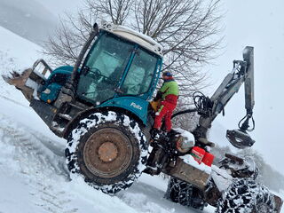 | Zubehör / Accessories: | Klemmbank, Frontschild, Heckschild, Hinterachse zusätzlich lenkbar, Traktionsketten für Hinterachse. |